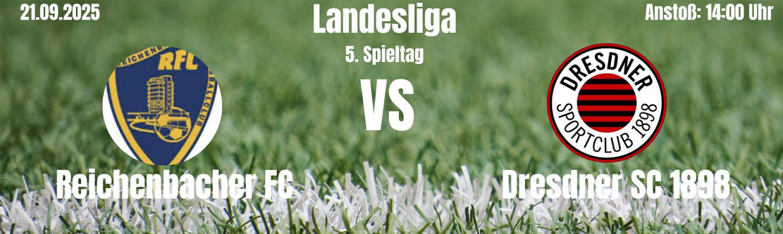 Für den Dresdner SC steht am Sonntag die weiteste Reise der Landesliga-Saison an. Wir treten beim Reichenbacher FC an. Zwischen den Stadien liegen stolze 132 Kilometer. Mit drei Siegen im Rücken tritt der DSC die Reise an. Damit die Rückreise Spaß macht, ist aber einmal mehr eine Top-Leistung nötig.