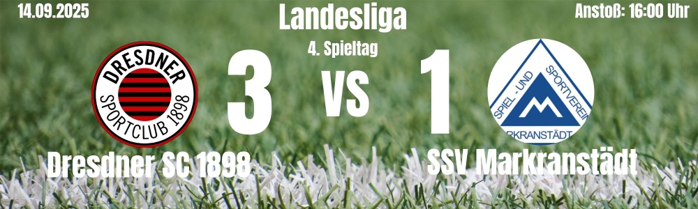 Der Dresdner SC ist endgültig in der neuen Saison angekommen! Mit einem 3:1 gegen Markranstädt holten die Friedrichstädter den dritten Pflichtspielsieg hintereinander und schoben sich auf Platz 9 der Landesliga vor. Der schwache Saisonstart ist zumindest vorerst korrigiert.