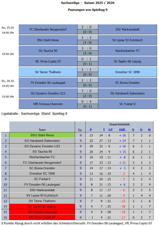 Alle Termine des DSC in der Sachsenliga (Änderungen möglich)